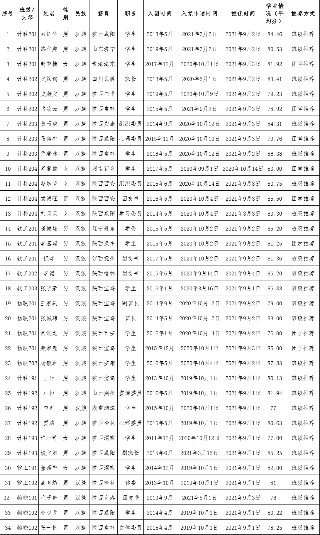 为进一步增强共青团的吸引力和凝聚力,激励广大团员青年在学习、工作、生活中发挥模范作用,推荐优秀团员青年作为入党积极分子人选,根据《共青团beat365英国官网网站委员会推荐优秀团员作为党的发展对象工作条例》要求,beat365英国官网网站团总支严格按照推优程序,民主选举,共计34名同学顺利推优,现将名单予以公示。