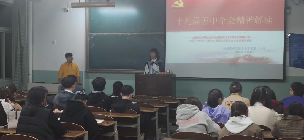 为学习贯彻十九届五中全会精神,促进学生党员牢记使命,充分发挥党员的先进性,11月10日,beat365英国官网网站学生第二党支部组织41名学生党员和预备党员、发展对象于主楼208教室开展了“十九届五中全会精神”主题讨论活动。