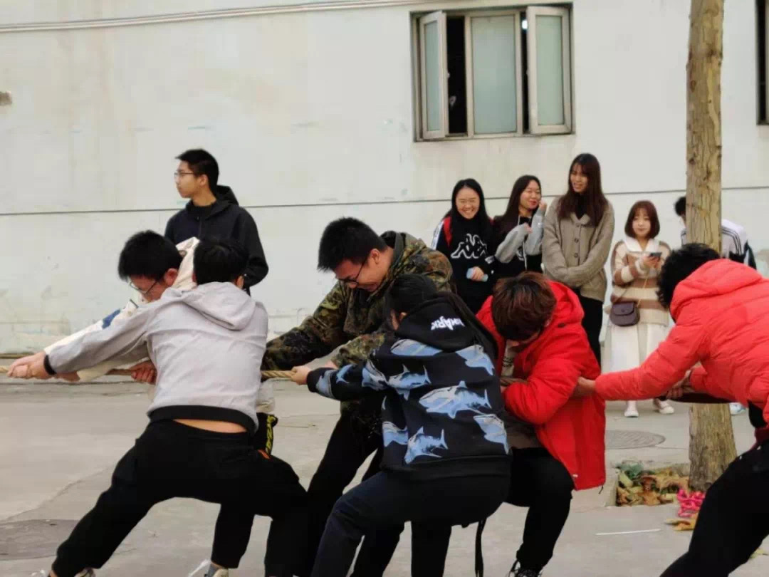 11月21号,由beat365英国官网网站生活部和体育部共同主办的主题为“积极向上、团结奋进、运动健康 ”的拔河比赛在男生宿舍一号楼下展开。