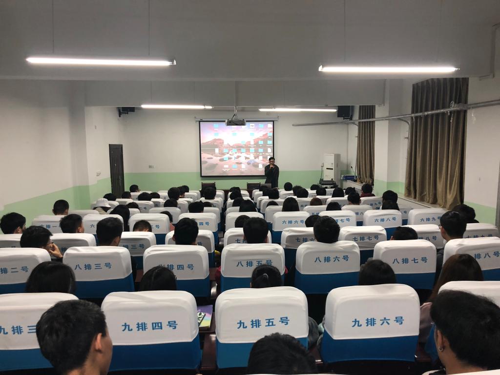 吴老师首先为大家介绍了人工智能的定义与概念,以视频的形式告诉大家人工智能无处不在。接着,他给同学们展示了人工智能下的无人驾驶、消息提供、物件寻找等“神奇”事情的发生,介绍了人工智能近几年来的发展历程和市场运用。最后,吴老师结合行业背景给同学们介绍了当前企业经常用到的前沿科技和计算机环境,实际操作了AI大数据分析和APP运用。同学们提了很多感兴趣的问题,吴老师都耐心解答,现场交流气氛热烈,学生受益匪浅。