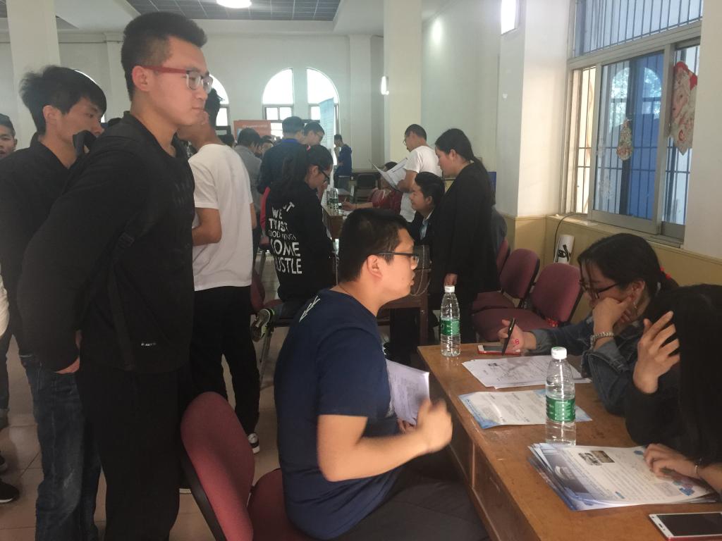 4月10日下午,beat365英国官网网站在职工活动中心举办专场招聘会。来自陕西比扬通信科技有限公司、北京双星普天科技有限公司、深圳市德卡科技股份有限公司、北京四维图新科技股份有限公司、博彦科技股份有限公司等13家用人单位参加了现场招聘,共为毕业生提供了80余个岗位。