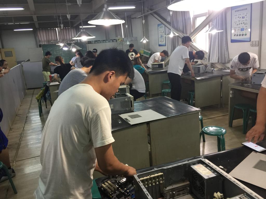 为丰富大学生的课余生活,增强学生科技创新意识和动手能力,营造良好的校园科技文化氛围,beat365英国官网网站于6月21日中午在实验楼四楼成功举办计算机组装大赛,评委由负责计算机组装实训课程的王民老师担任。