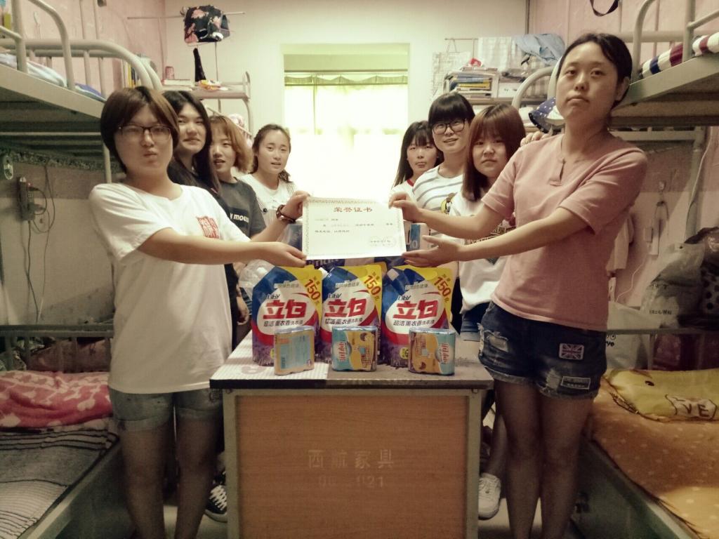 在5月15日的评选中,多数宿舍被子排放整齐,床单平坦无痕,书桌摆放井然有序,鞋子整齐地排成一条线,地面干干净净,门窗擦得一尘不染,一进宿舍就有一种干净、明亮的感觉。但是在检查过程中,仍发现有所不足:个别宿舍平时打扫卫生不积极,当检查时才急急忙忙整理;有些学生在床上堆一些书或其他生活用具,使床面显得凌乱。