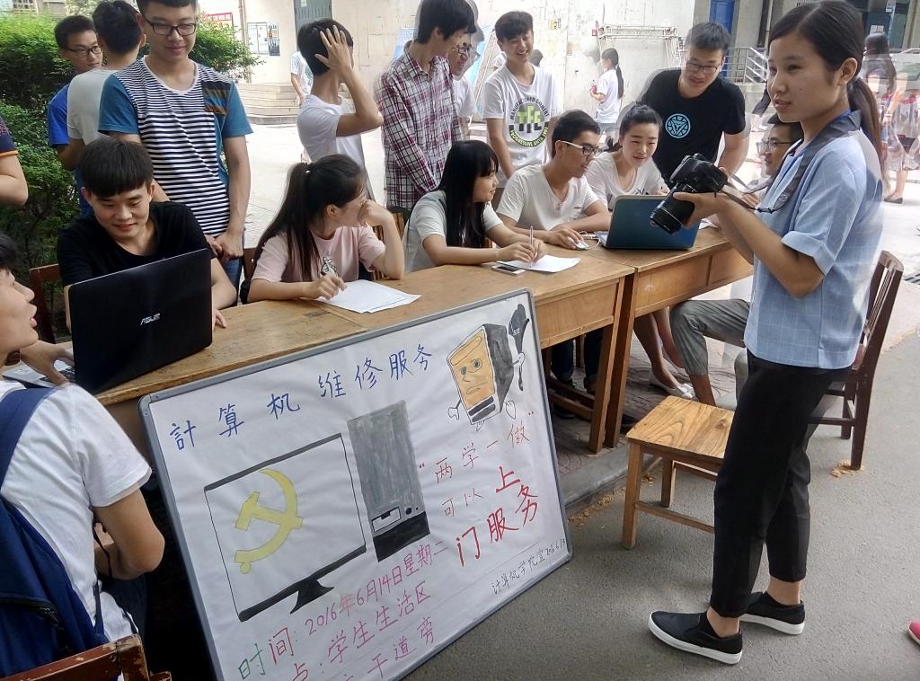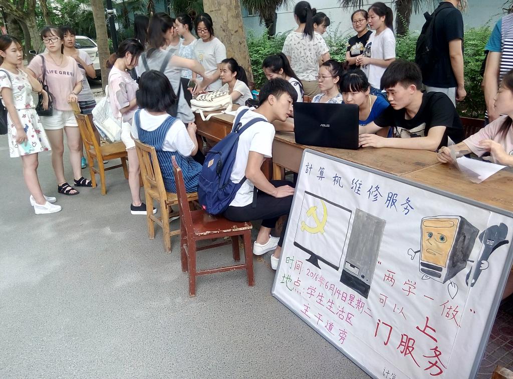 6月14日,beat365英国官网网站学生党支部组织53名预备党员和积极分子开展计算机服务站活动,主要是针对全校师生计算机方面的问题进行解答和维修。