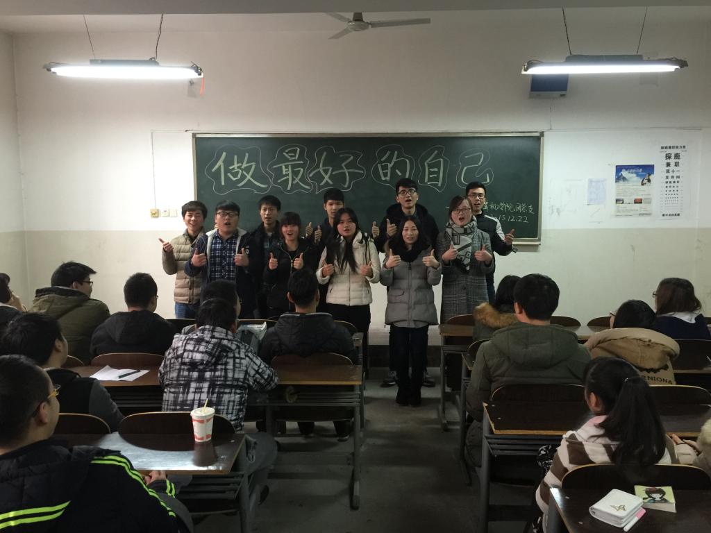 会上,团总支书记米嘉琪以“做最好的自己”开始,为同学们讲解了“做学生干部的意义”、“学生干部应具备的素质”、“学生干部的光荣使命”等内容,从四个方面对学生干部提出了一些要求及建议:学生干部应树立正确的价值观;严格要求自己,在各方面做同学的楷模,善于团结同学,听取和采纳同学中的正确意见;勇于接受同学的批评,勇于改正自己的缺点和错误;要以一颗“平常心”来对待。最后,米嘉琪老师强调在即将到来的圣诞节和元旦落实安全责任,排查安全隐患,做好查寝等工作。