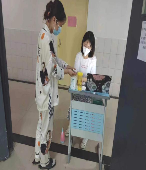 他们温情相伴,是时刻关注学生身心健康的守护人。他们从学校封闭管理的第一天起,就与学生同吃同住,守护在学生们的身边。他们日常积极主动了解学生们的需求,在收到餐券、防护物资的第一时间,组织领取、发放到位,并反复叮嘱学生做好防护,及时消杀。为确保学生返校后安全稳定,取消堂食的第一时间,他们及时向在校同学了解需求,把层级学生管理群作为学校政策和防疫的宣传教育阵地,各项通知提醒也会及时转发到楼群,保障学生从多渠道及时了解学校政策信息。深夜有学生在群中反馈有同学半夜胃疼难受,张家玮看到消息后迅速做出反应,一边安抚学生情绪,一边赶往相应楼层查看情况,并陪同学生就医。