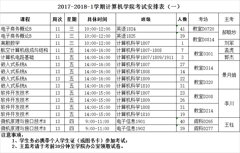 2017-2018-1学期beat365英国官网网站考试安排(一)