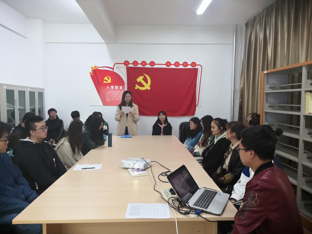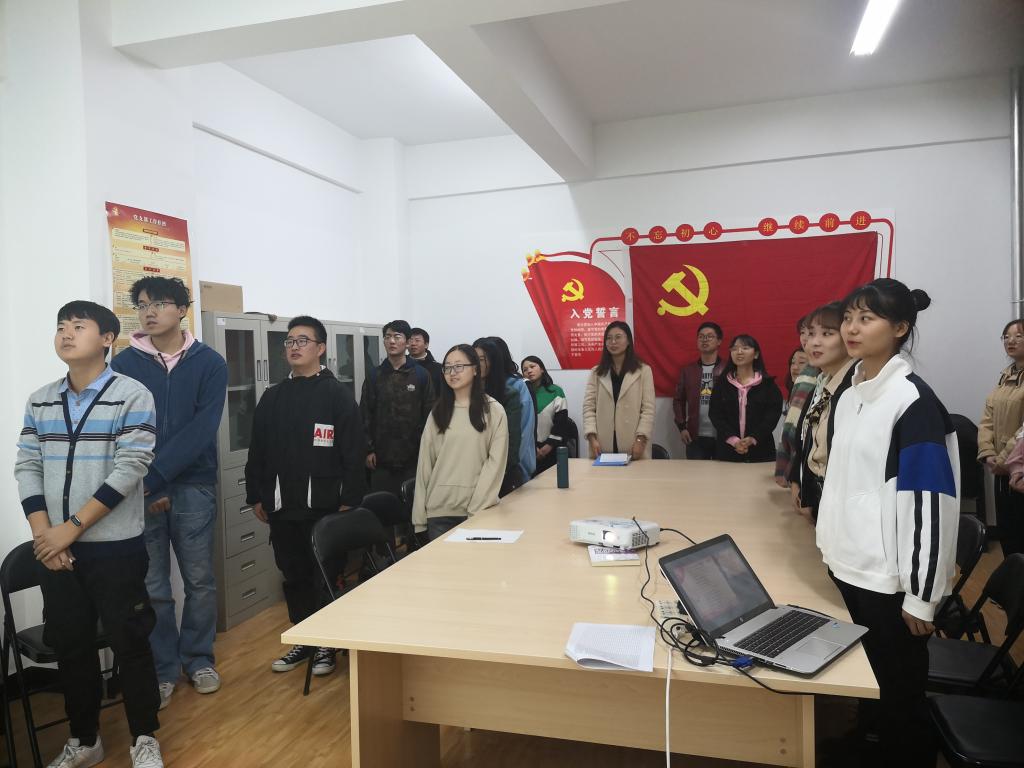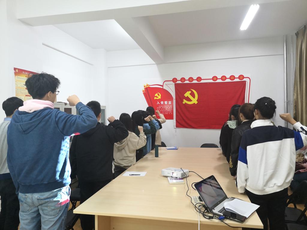10月31日,beat365英国官网网站学生党支部于三号公寓一楼党团活动室举行了预备党员入党宣誓仪式。十三名预备党员、学生正式党员代表和积极分子代表参加了此次活动,仪式由学生党员贾帅主持。