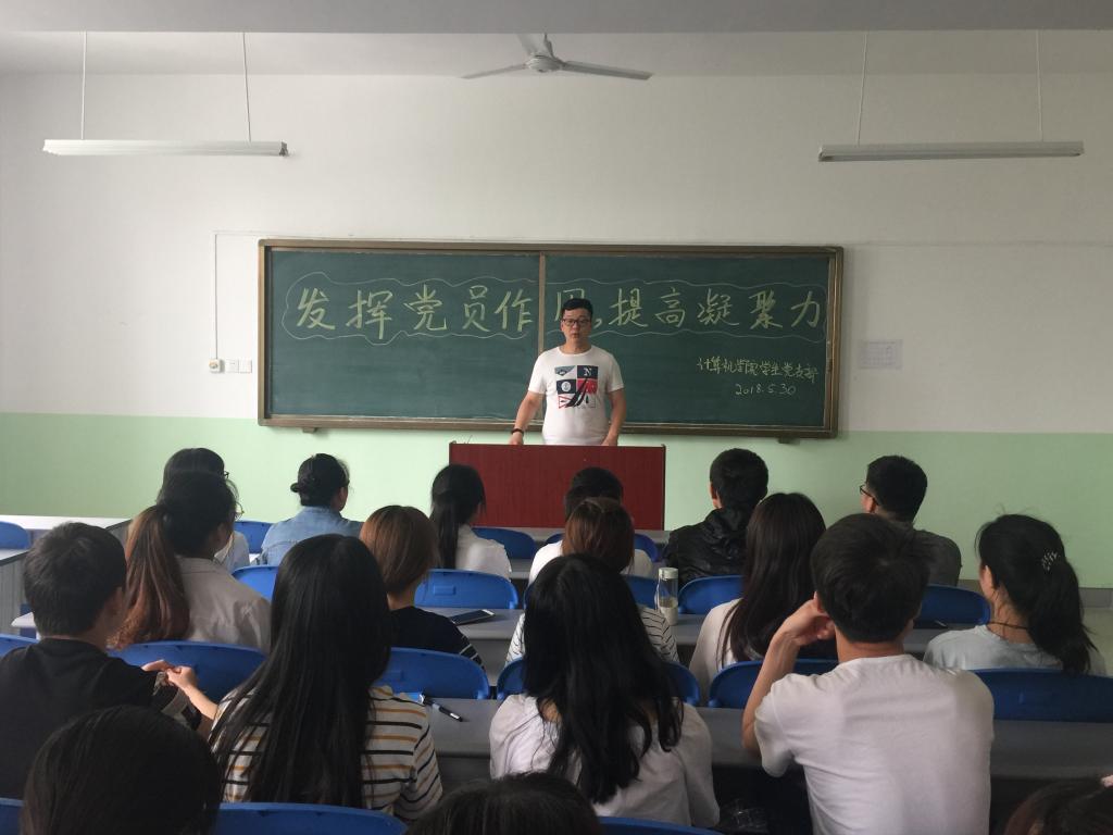 会上,米嘉琪以十九大报告和学校二次党代会精神为基础,首先为同学们解读了新时代所带来的新使命、新使命下实现中华民族伟大复兴的新征程的含义,要求大家要以报告精神为指引,用新思想新理论武装头脑,提高思想政治觉悟。接着,米嘉琪从端正态度、转变作风、做好表率、从自己做起等四个方面给大家讲解如何发挥党员作用,希望同学们在今后的学习、生活中能认真学习领会党的文件精神,坚定信念、敢于担当、乐于奉献,不忘初心,继续前进。最后,大家就自己近期的思想状况进行了交流。
