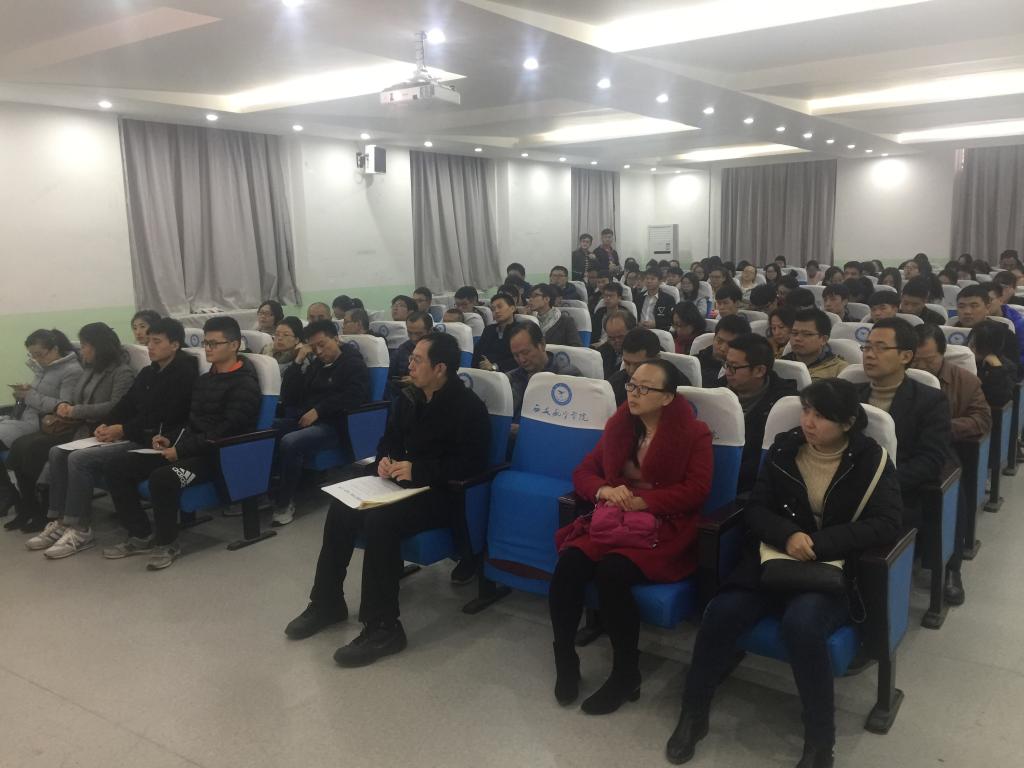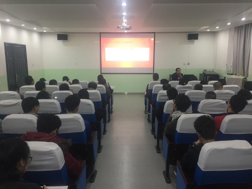 为了深入学习十九大报告,11月24日下午,beat365英国官网网站在沣惠校区教学南楼108报告厅召开学习十九大精神专题报告会。此次邀请了我校党的十九大精神宣讲组成员、思政部副部长张雷作专题报告。会议由beat365英国官网网站院长杨俊清主持,全体教师和学生党员共90余人参加了会议。