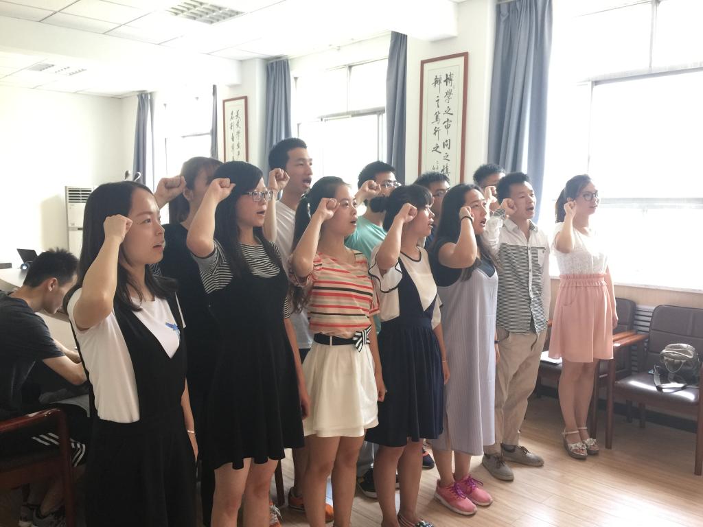 大会开始,全体起立齐唱《国际歌》,在米嘉琪的带领下,11名新党员面向党旗进行了庄严的宣誓,表达了自己为共产主义理想奋斗终身的决心。新党员代表汤鸣炎在发言中表示:作为学生党员应树立远大理想,勇于追求真理,为同学们树立榜样;会牢记誓词,将誓词深入内心,将共产主义作为信仰。支部书记汪芳对所有党员提出了三点要求:第一,努力学习,不断提升自己作为一名共产党员的修养,发挥模范带头作用;第二,提高自己的责任意识和服务意识,勇于承担各项工作;第三,做好表率,用实际行动为学院发展做出更大的努力和更多的贡献。最后,大会授予汤鸣焱、李浩2名同学“优秀学生党员”称号。