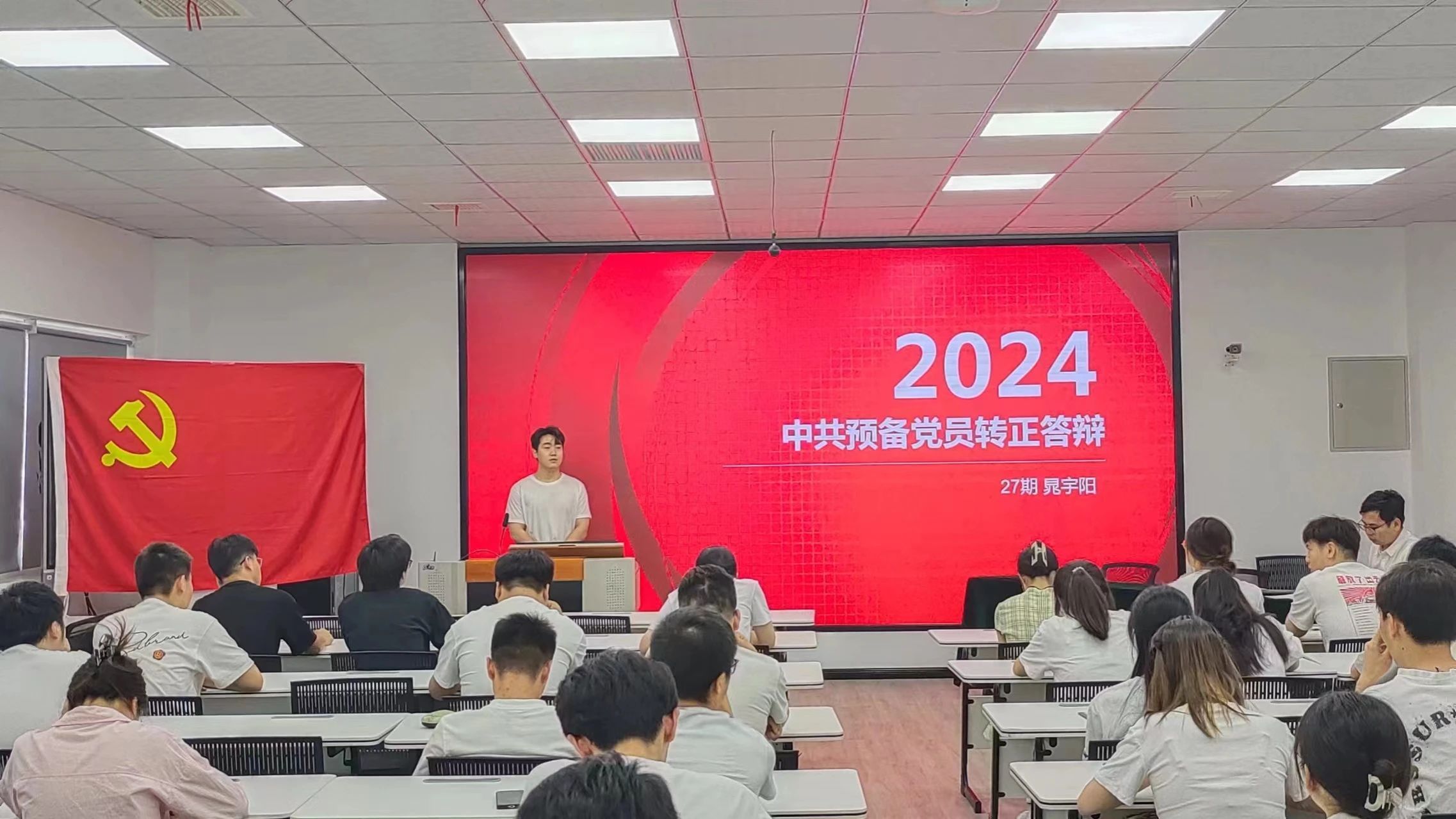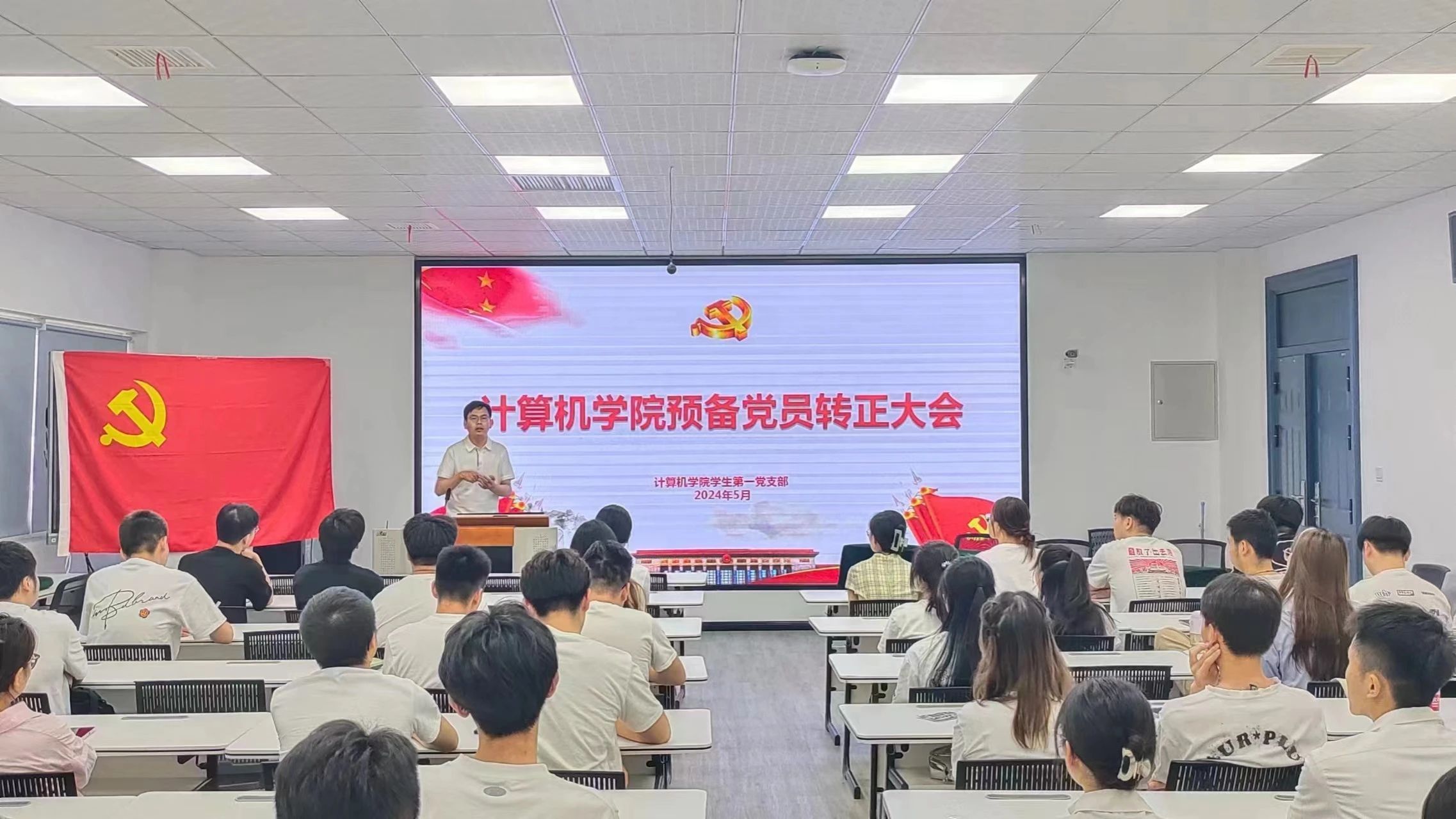 2024年5月22日,beat365英国官网网站学生第一党支部在教学主楼0920召开预备党员转正大会。会议由学生第一党支部书记贺宇主持,beat365英国官网网站学生第一党支部全体在校党员参加本次会议。