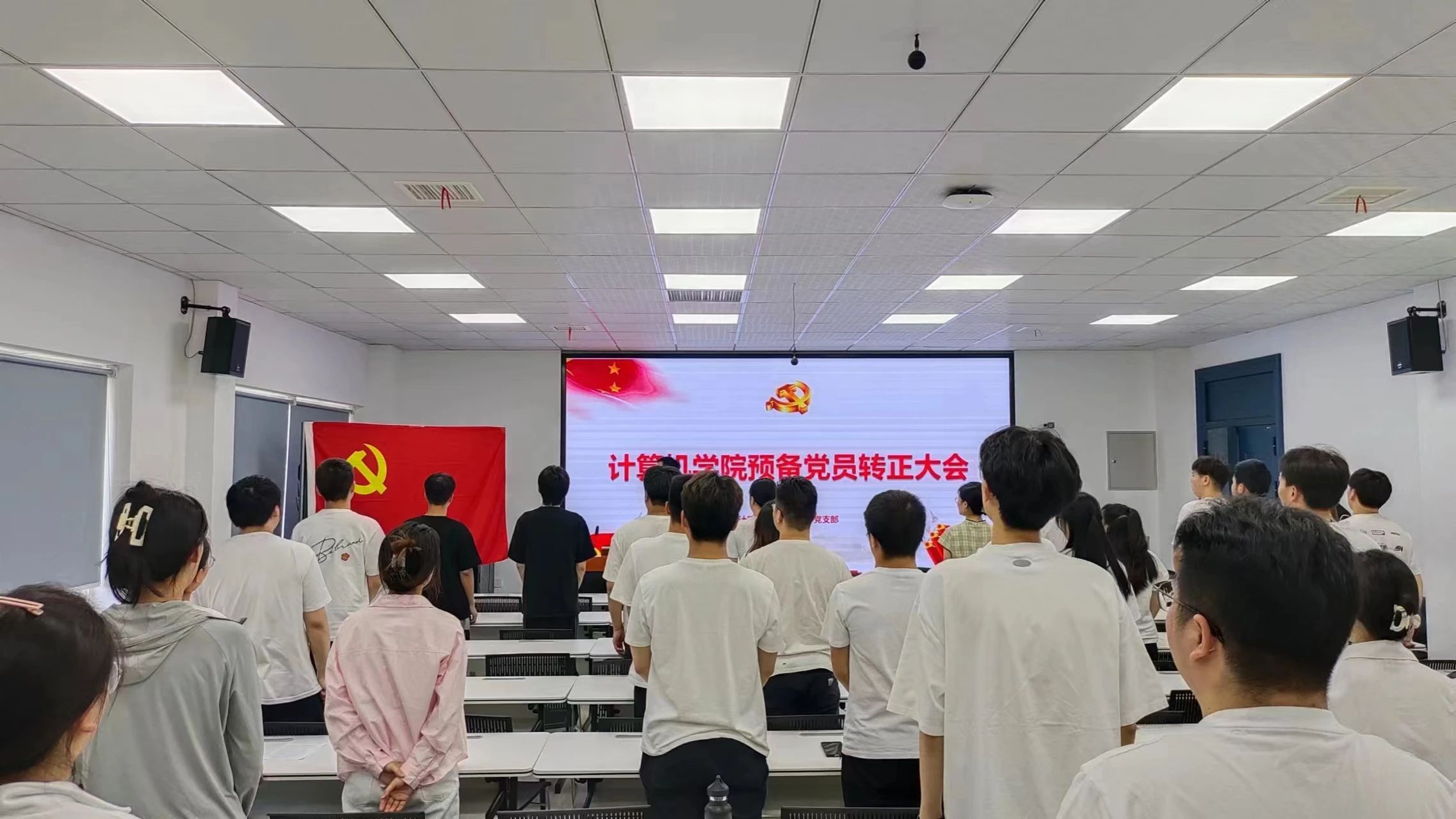 全体正式党员对预备党员的转正进行了表决。贺老师宣布结果,经支部党员表决,同意刘志源等26名预备党员转为中共正式党员。