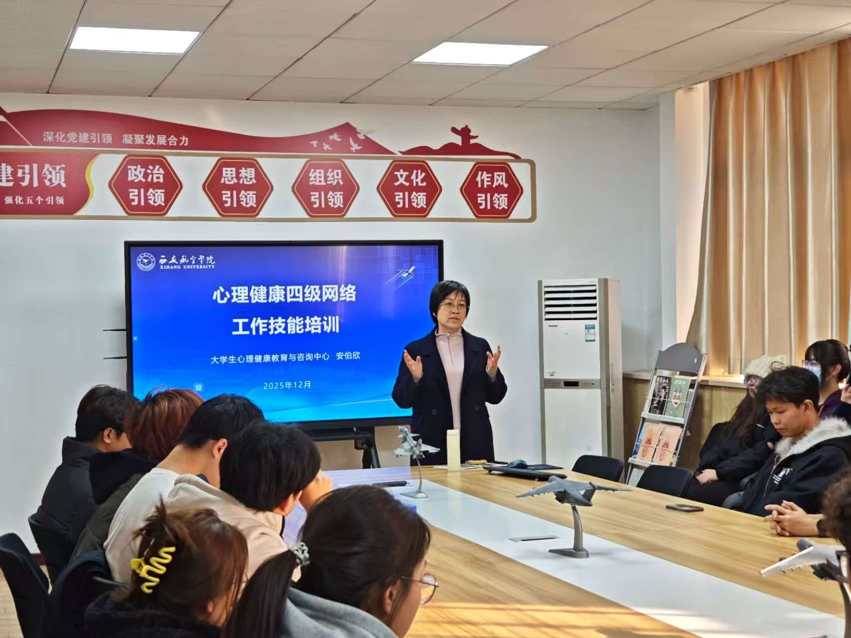 为切实发挥心理育人实效,12月5日下午,学校大学生心理健康教育与咨询中心主任安伯欣老师在教学北楼216为beat365官网2025级心理委员、心灵护航员做心理健康四级网络工作技能培训,培训会由辅导员刘冬妮主持。